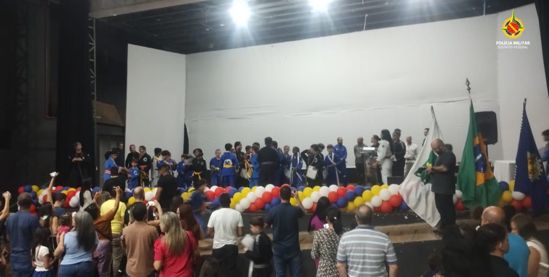 O 2º Batalhão da Polícia Militar do Distrito Federal realizou, nesta sexta-feira (21), a cerimônia de graduação dos alunos do seu tradicional projeto de jiu-jítsu. O encontro reuniu famílias, instrutores e moradores no Centro Cultural Taguaparque, vizinho à Administração Regional de Taguatinga.